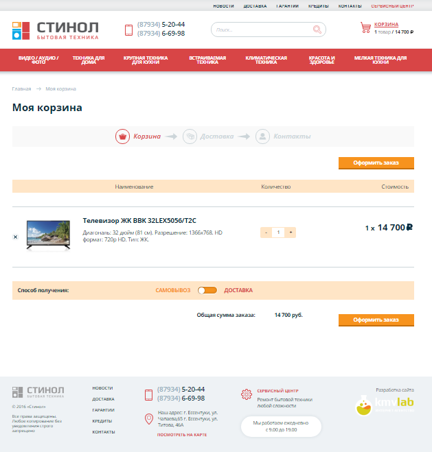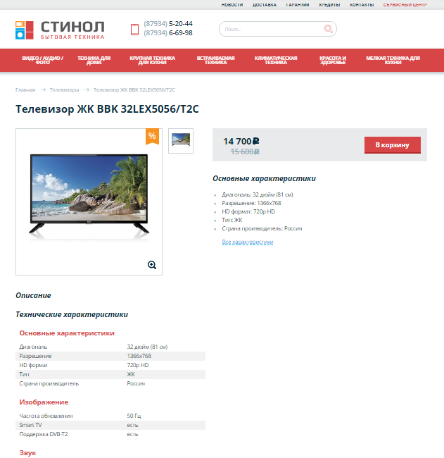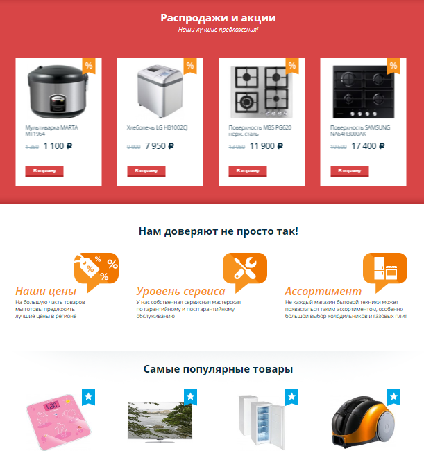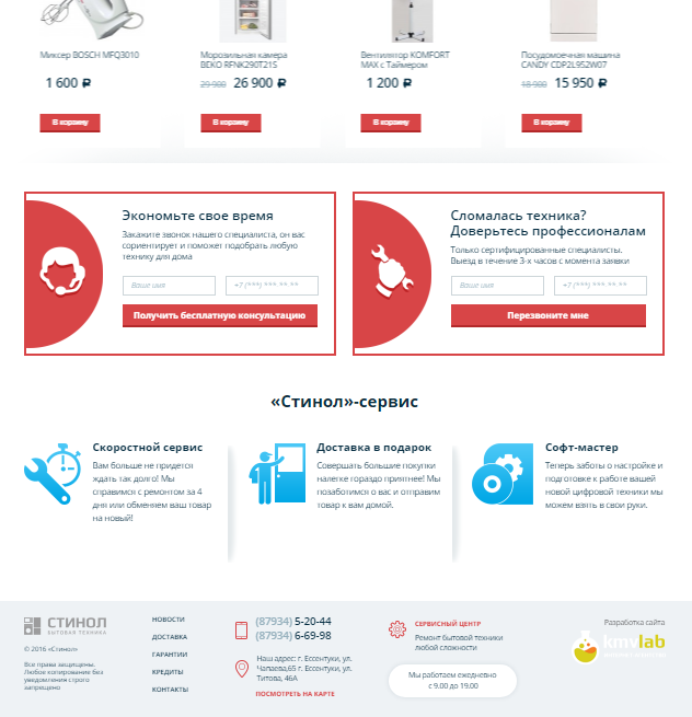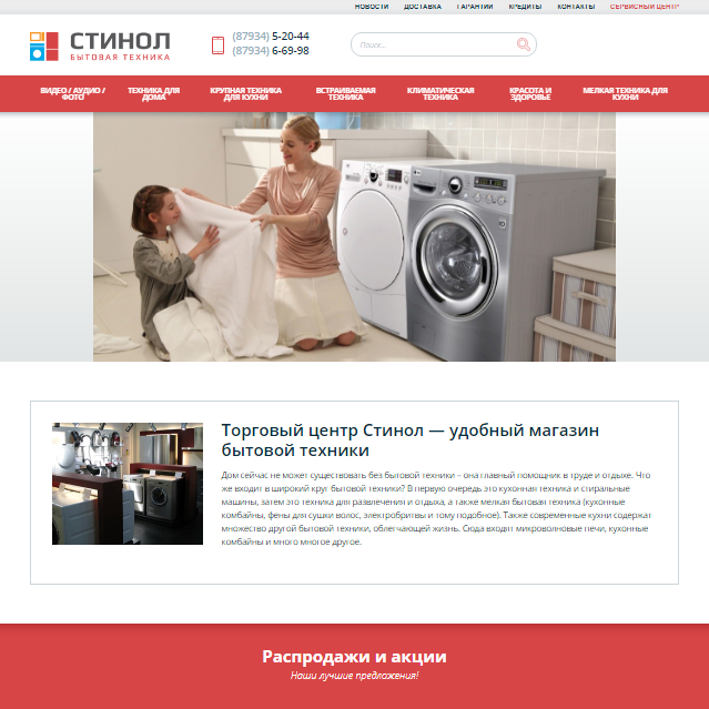 Разработанный сайт предоставляет пользователю возможность изучить весь ассортимент товаров, которыми располагает интернет-магазин «Стинол». Удобный интерфейс, приятный дизайн и грамотная структура помогли сайту занять высокое положение в выдаче по запросу "интернет магазин бытовой техники", даже без продвижения.