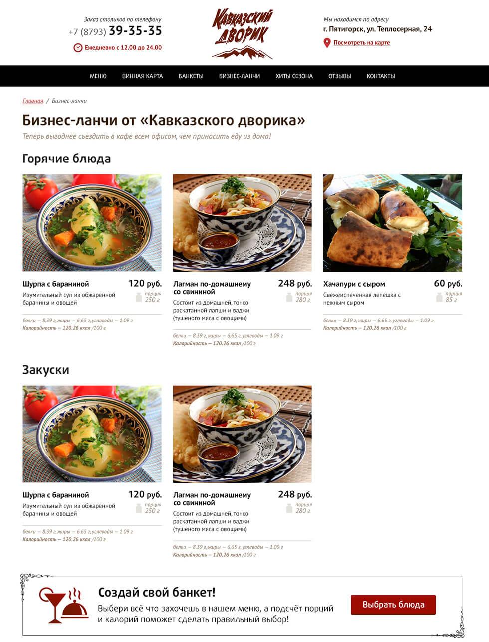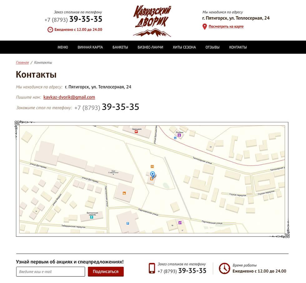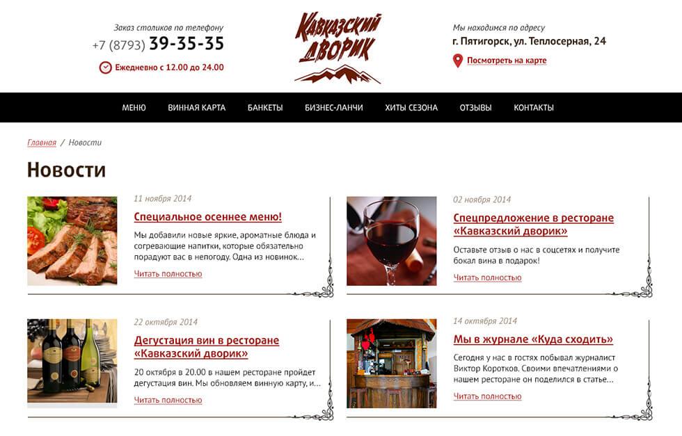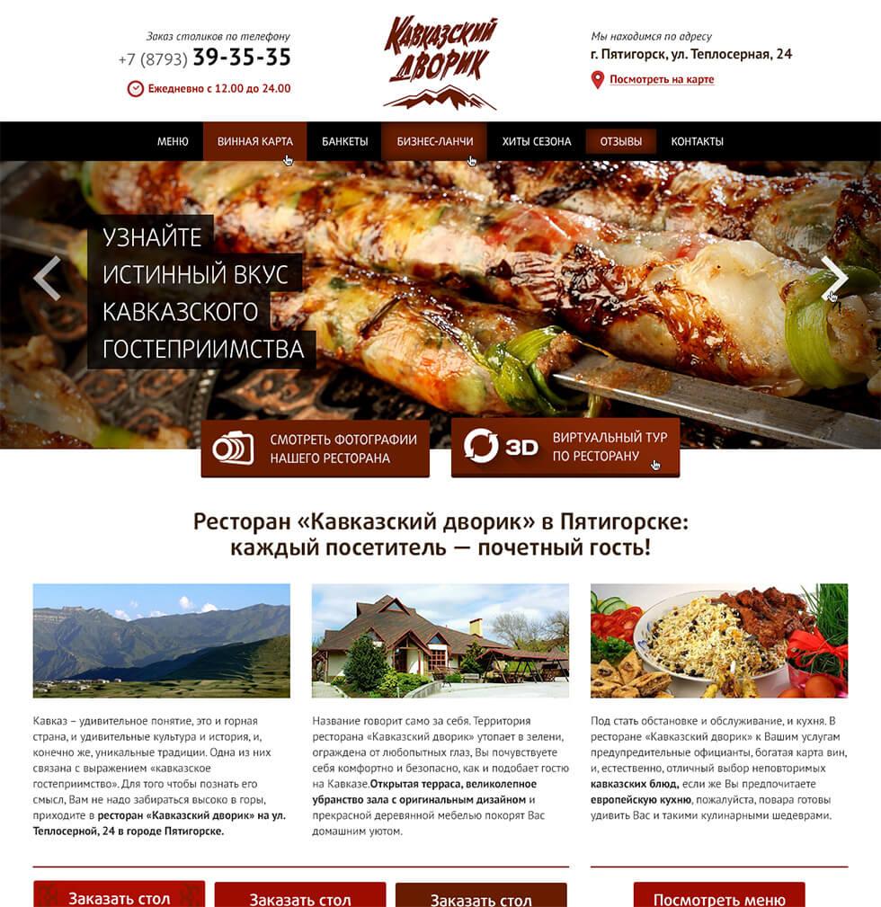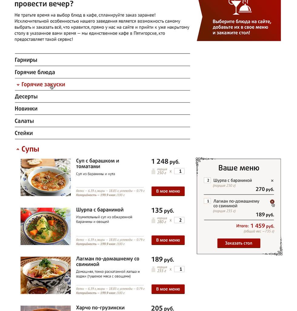 Помимо редкой фишки с актуальным онлайн меню стала изюминка в виде адаптивного дизайна. Аналогов данному ресторану по уровню проработанности дизайна и удобству пользования в регионе на момент создания и запуска просто не существует — это первый в Пятигорске и на КМВ сайт ресторана с адаптивным дизайном! Мы гордимся этим проектом!