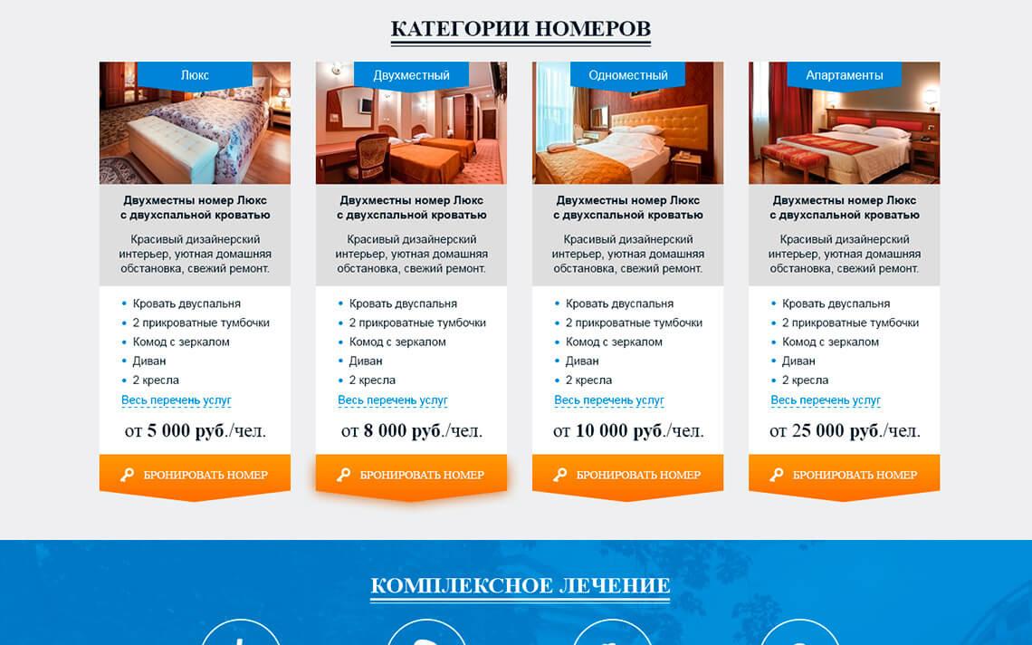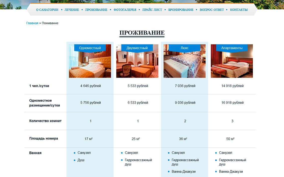 Создание сайта для санатория не является сложной задачей, но требует максимального внимания к деталям и преимуществам конкретного объекта размещения. В результате проделанной работы все понесённые клиентом затраты на создание сайта окупились менее чем за месяц. Посещаемость увеличилась практически вдвое без вложения в рекламу и раскрутку. Достичь такого впечатляющего результата удалось путём грамотной планировки удобной структуры сайта и расположения информации.